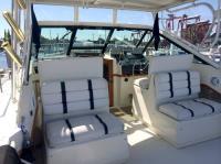 A truly beautiful boat that features a spacious cabin with a full complement of facilities, including a large private head, an enclosed hardtop for poor weather, and plenty of room if the weather turns crazy during your charter.